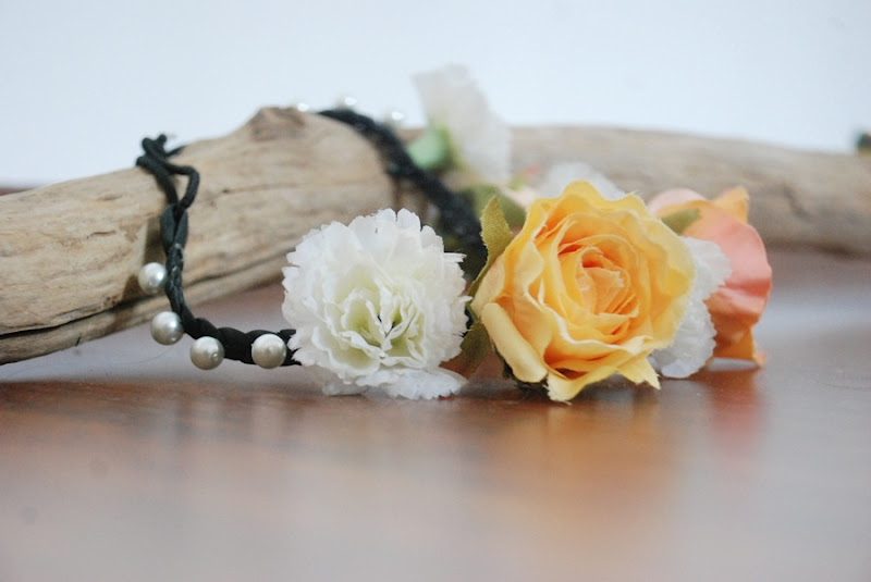 Wianuszek ze sztucznych kwiatów i opaskę z perełkami i kwiatkami. Pracy przy nich niewiele, a wyglądają naprawdę uroczo! Najchętniej nosiłabym je cały czas. No właśnie, dokąd je nosić i do jakich stylizacji? Wianek jest duży i kolorowy, więc na pewno mocno rzucałby się w oczy, dlatego myślę, że jest on dobry na imprezę lub do stonowanego stroju, aby nie było przesadnie. Za to opaska jest delikatniejsza (choć też całkiem spora) i myślę, że można ją nosić nawet na co dzień. :)
